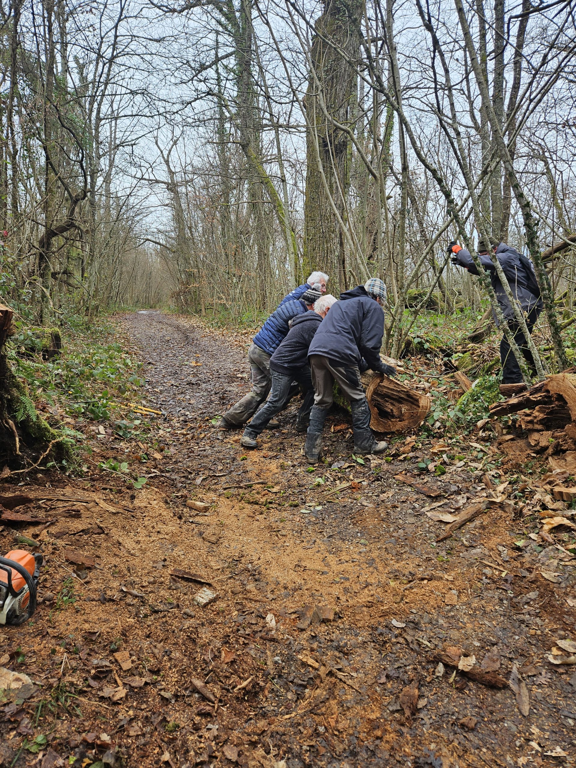 - Tronçonnage de plusieurs arbres coucher sur le chemin